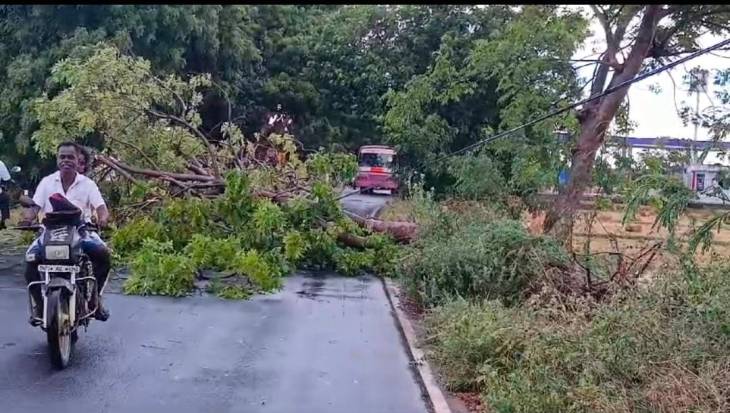 மழையால் நாசரேத் சாத்தான்குளம் சாலையின் ஓரம் இருந்த மரம் ஒன்று காற்றில் சாய்ந்து நடுரோட்டில் விழுந்தது. இதனால் அந்த பகுதியில் போக்குவரத்து பாதிக்கப்பட்டது. இதையடுத்து ஜேசிபி இயந்திரம் மூலம் அந்த மரம் அப்புறப்படுத்தப்பட்டு மீண்டும் போக்குவரத்து தொடங்கியது.