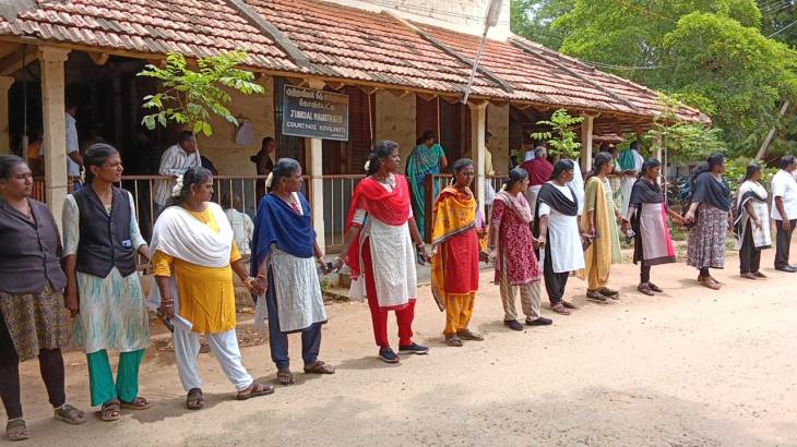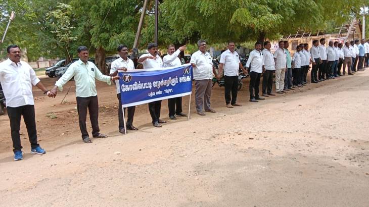 கோவில்பட்டி ஒருங்கிணைந்த நீதிமன்றம் முன்பாக வழக்கறிஞர்கள் மனித சங்கிலி போராட்டம்