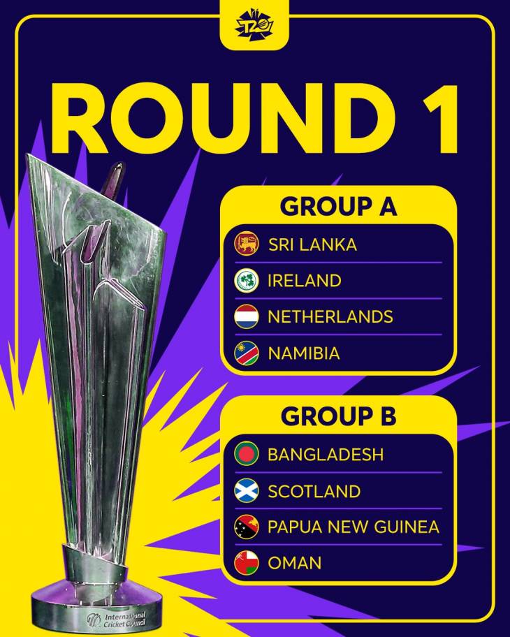 இந்த வருட உலகக் கோப்பை டி20 போட்டிக்கான பிரிவுகளை பிசிசிஐ அறிவித்துள்ளது. சூப்பர் 12 என்றழைக்கப்படும் இந்த சுற்றில், ஒரு பிரிவிற்கு 6 அணிகள் வீதம், இரு பிரிவுகளாக பிரிக்கப்பட்டுள்ளது. உலகக் கோப்பைக்கு நேரடித் தகுதிபெற்ற டாப்8 அணிகளோடு லீக் சுற்றின் வெற்றி பெற்ற அணிகள் புள்ளிகளின் அடிப்படையில் சூப்பர்12 தொடருக்கு தகுதி பெறும்.