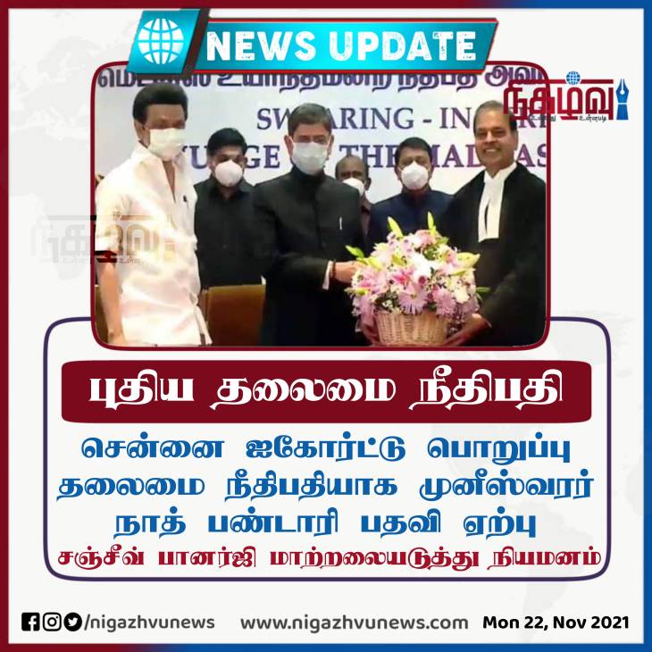 சென்னை உயர்நீதி மன்றத்தின் புதிய தலைமை நீதிபதியாக முனீஸ்வரர் நாத் பண்டாரி பதவி ஏற்பு