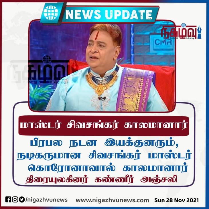 பிரபல நடன இயக்குனர் சிவசங்கர் மாஸ்டர் கொரோனாவால் காலமானார் : திரையுலகினர் கண்ணீர் அஞ்சலி