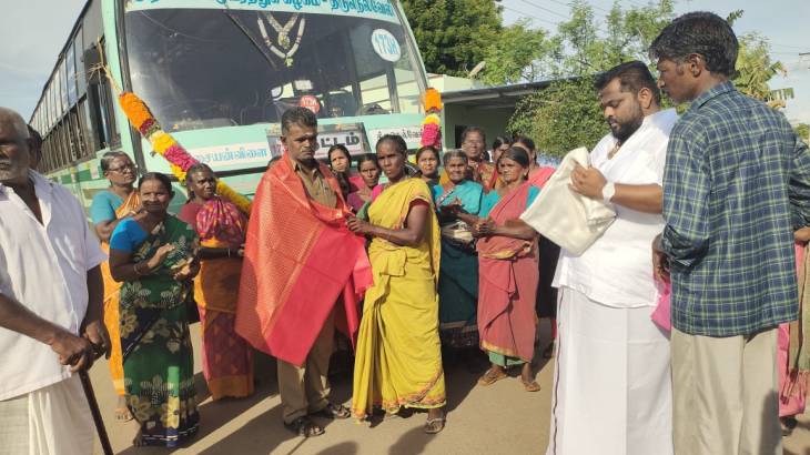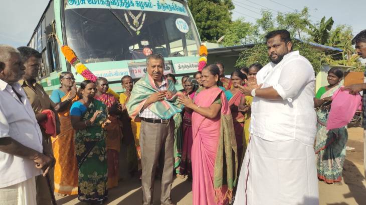 இதேபோல் புதிய அரசு பேருந்திற்கு சமூக ஆர்வலர் பி..ஏ . பாலகிருஷ்ணன் தலைமையிலும் மற்றொரு இடத்தில் வரவேற்பு அளிக்கப்பட்டது.